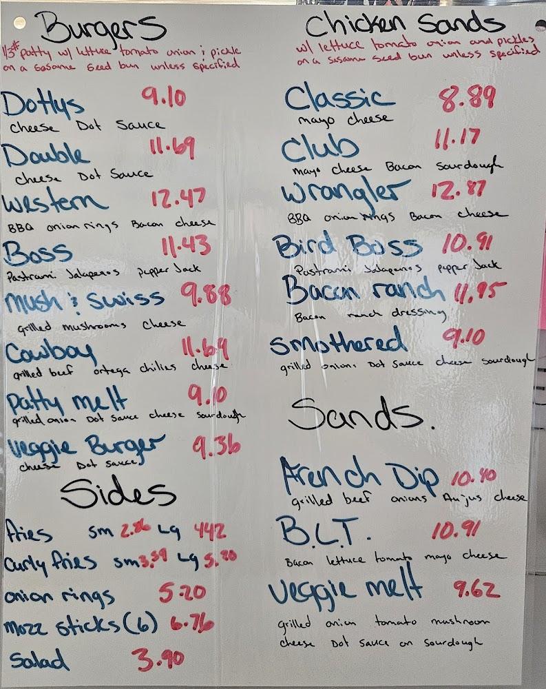 Dotty's menu shines with variety, featuring 43 items across several categories. Burgers reign supreme, with options like the Boss Burger and Mushroom Swiss Burger. Chicken lovers will enjoy various fried chicken and sandwich choices. Vegetarians can opt for the Veggie Burger or the Grilled Veggie Sandwich. Ensure to check out the kids' menu for delightful options ensuring a great experience for younger diners. Plus, side salads like the Wrangler Salad offer healthy alternatives. Lastly, the drink selection includes sodas and milkshakes, perfect for quenching your thirst after a hearty meal.