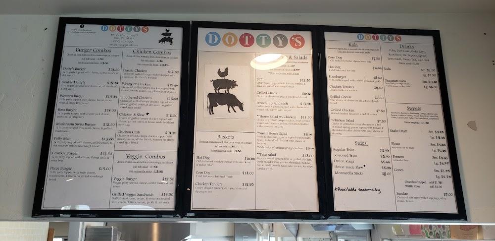 Welcome to Dotty's, your ultimate destination for delicious American cuisine in Etna, CA. Located at 404 CA-3, we offer a cozy atmosphere perfect for a solo dinner or a family outing. Savor our mouthwatering burgers, chicken dishes, and classic hot dogs, all prepared with fresh ingredients. Enjoy dining on our delightful terrace or opt for takeout and delivery options. With a menu catering to vegetarians and a commitment to quick service, Dotty's is ideal for lunch or dinner. Our accessible facilities ensure a comfortable visit for everyone. Join us for a memorable meal in a historic setting!